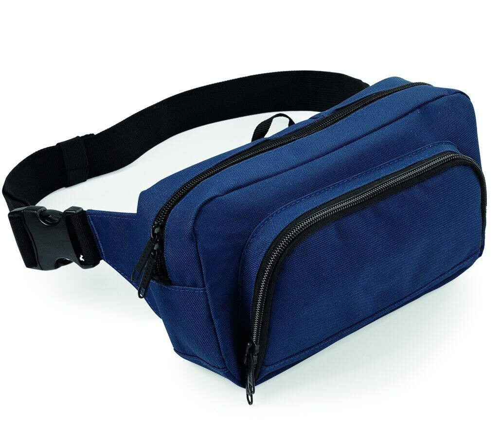 Adjustable webbing belt. Headphone port. Zippered rear pocket. Internal mesh pocket. Key hook. Dimensions: 24 x 13.5 x 9cm Capacity: 2.5 Litres Embroidery: 9 Tubular hoop Approx. Print Area: 14 x 8cm