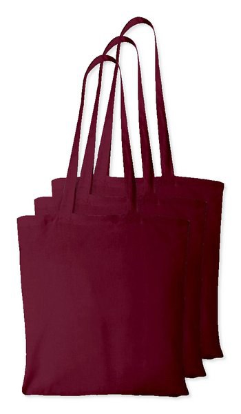 Pack of 3 Westford mill WM101 - Burgundy - Versatile Cotton Tote Bag for Customization