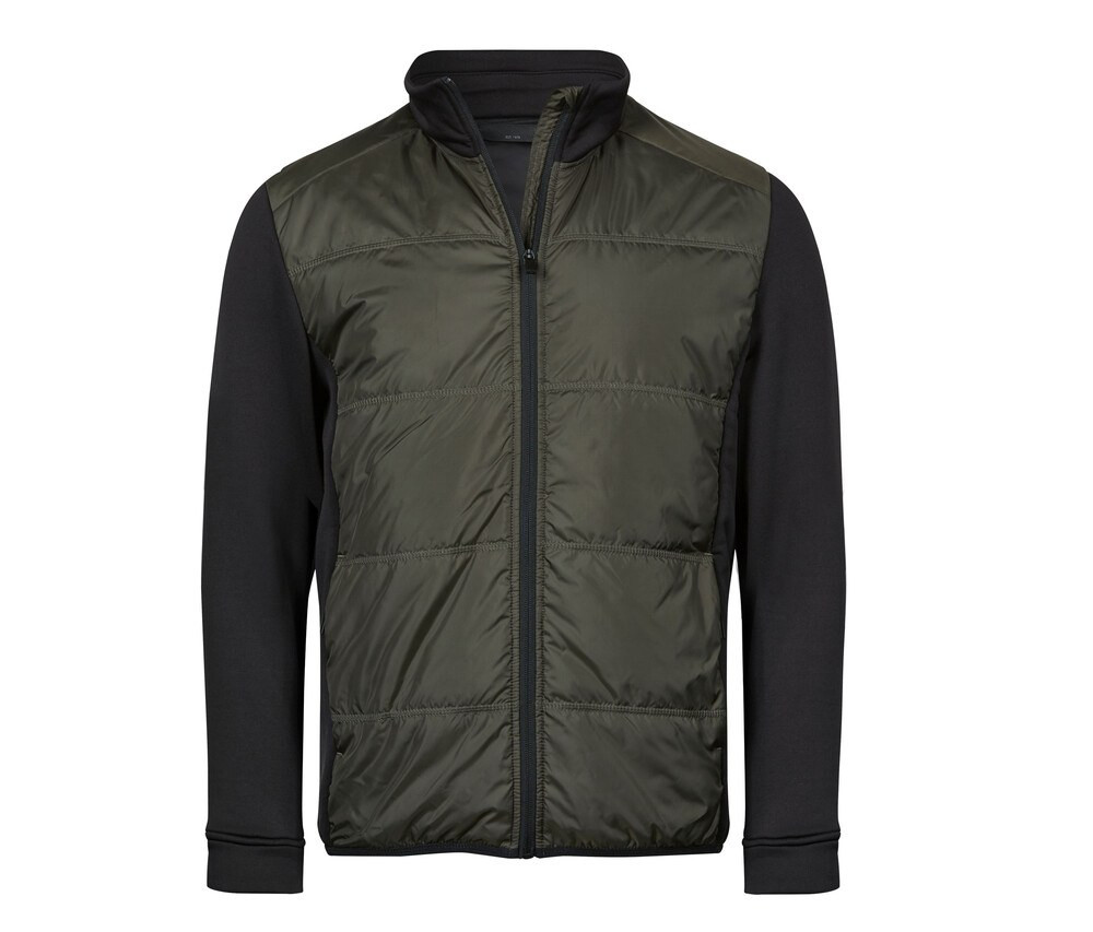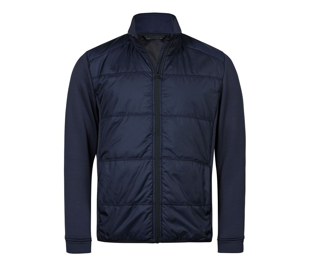 Combination of stretch fleece and woven fabric. DuPont™ padding insulation. Tailored fit. Elastic side panels and sleeves. 2 front hidden pockets with zippers. Inner pocket. Elastic banding at bottom hem. Stand up collar. SBS zippers.